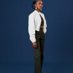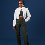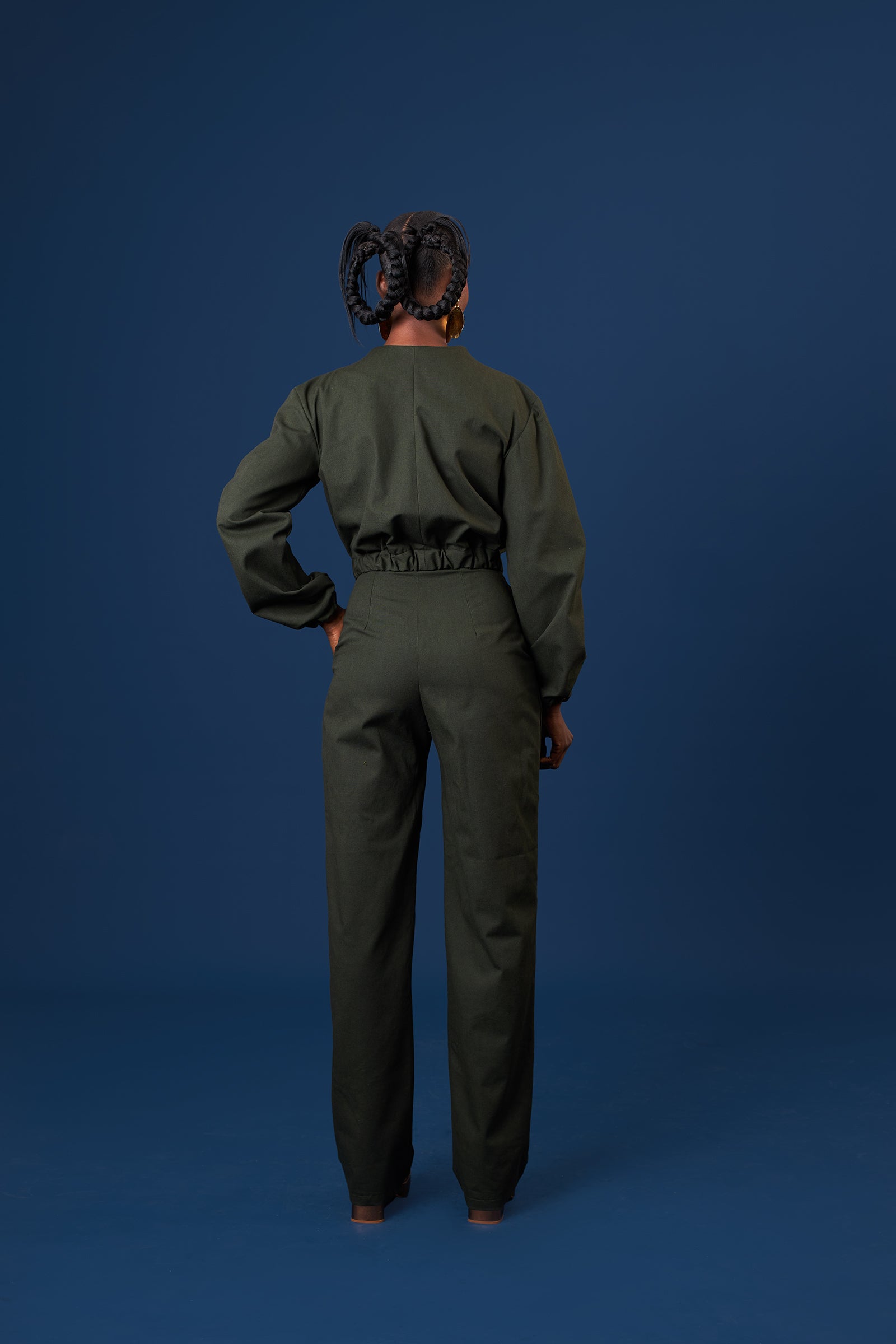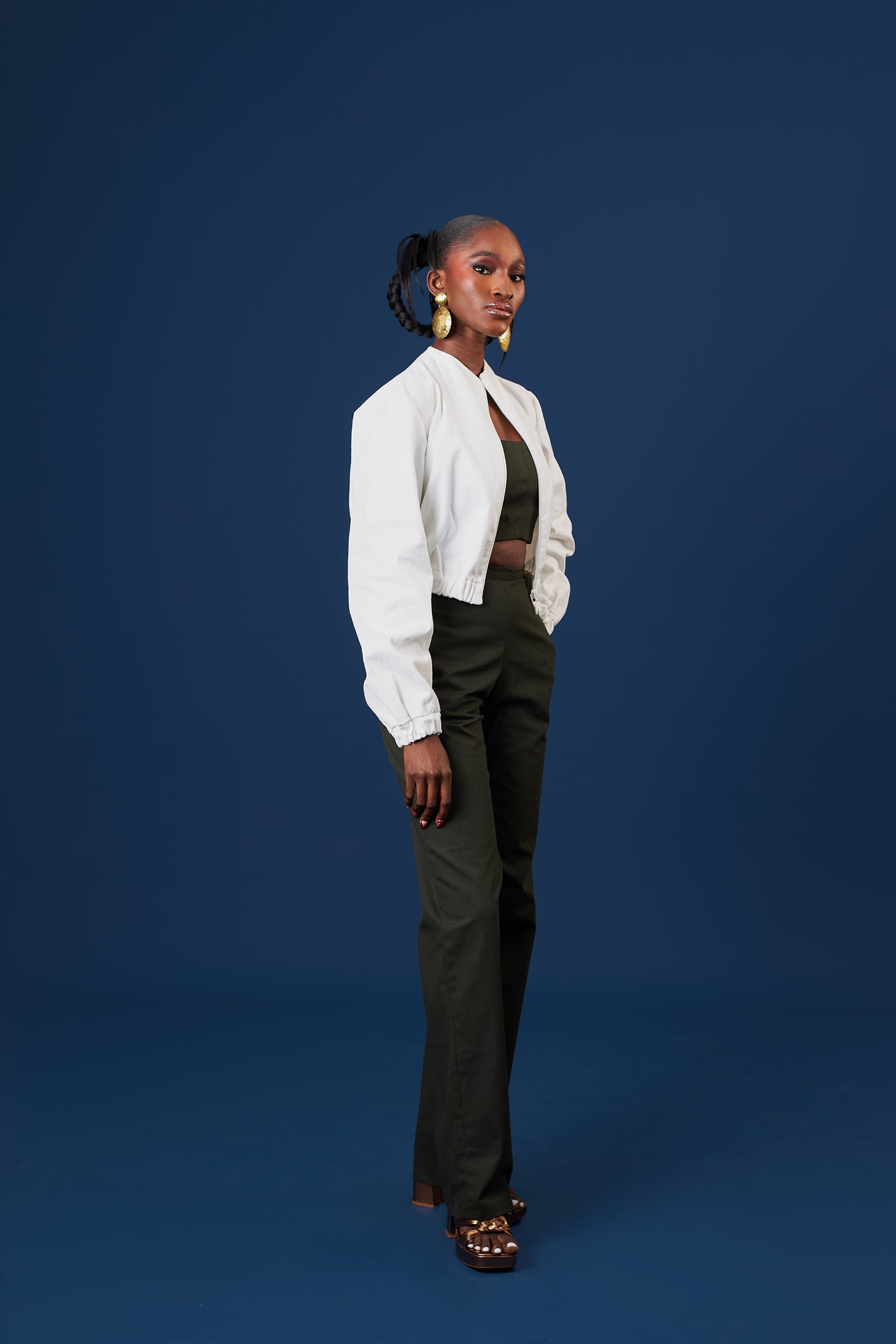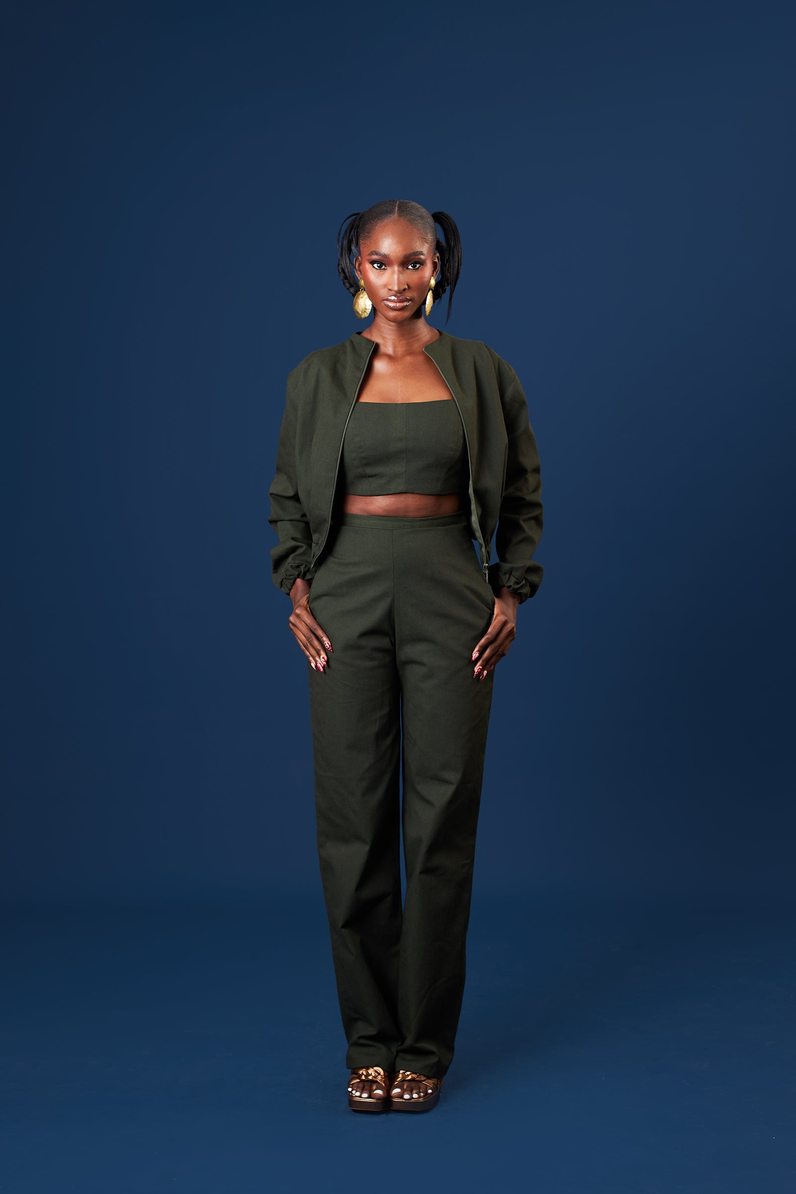 Long sleeve bomber jacket with front zipper & straight leg pants with side pockets