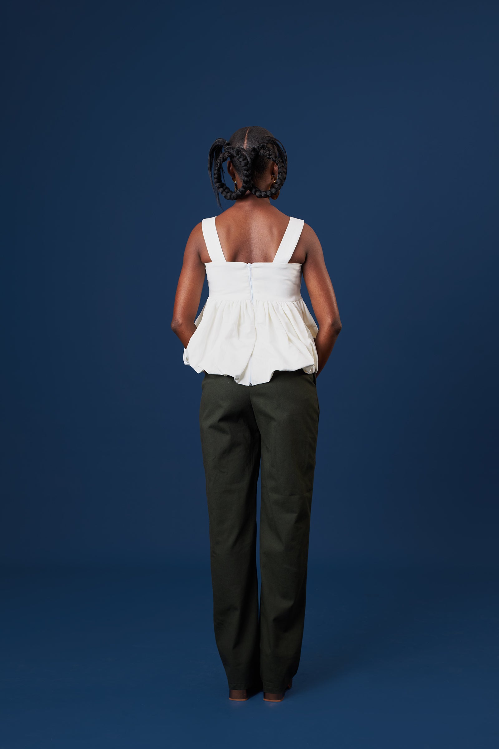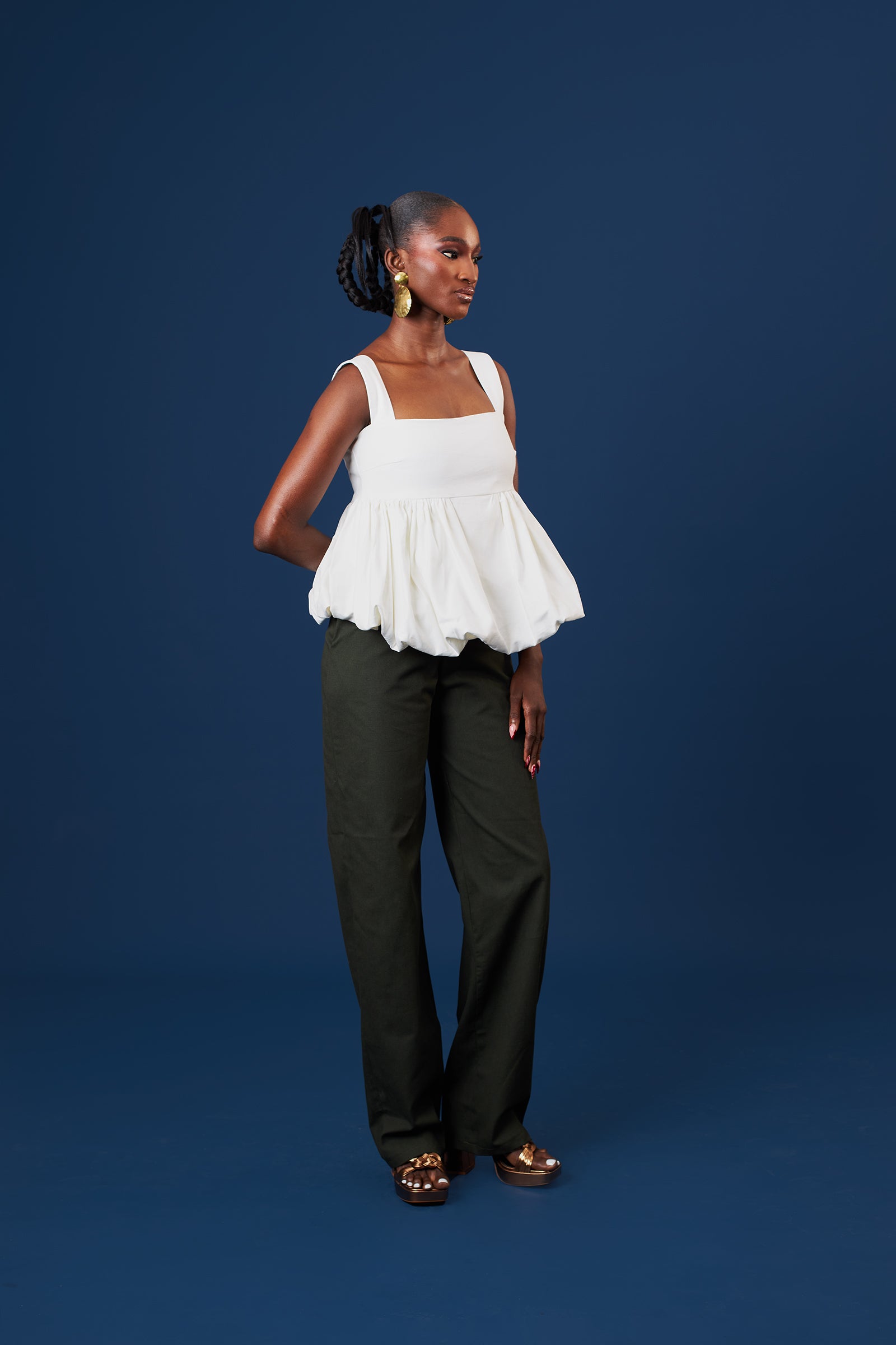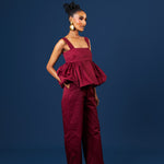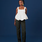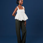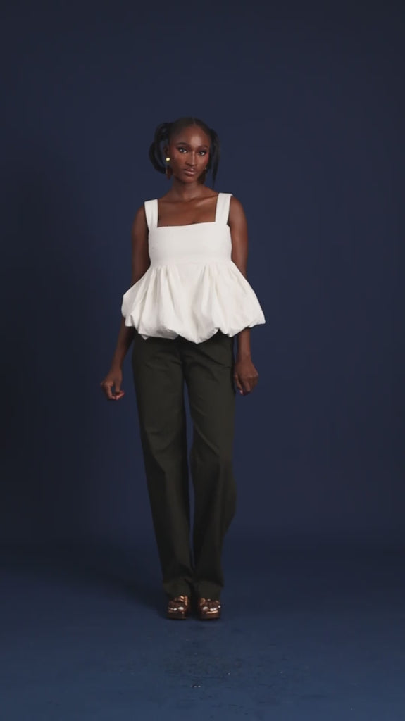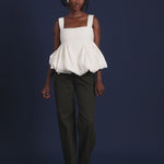 Sleeveless peplum top with bubble hem & empire waistline